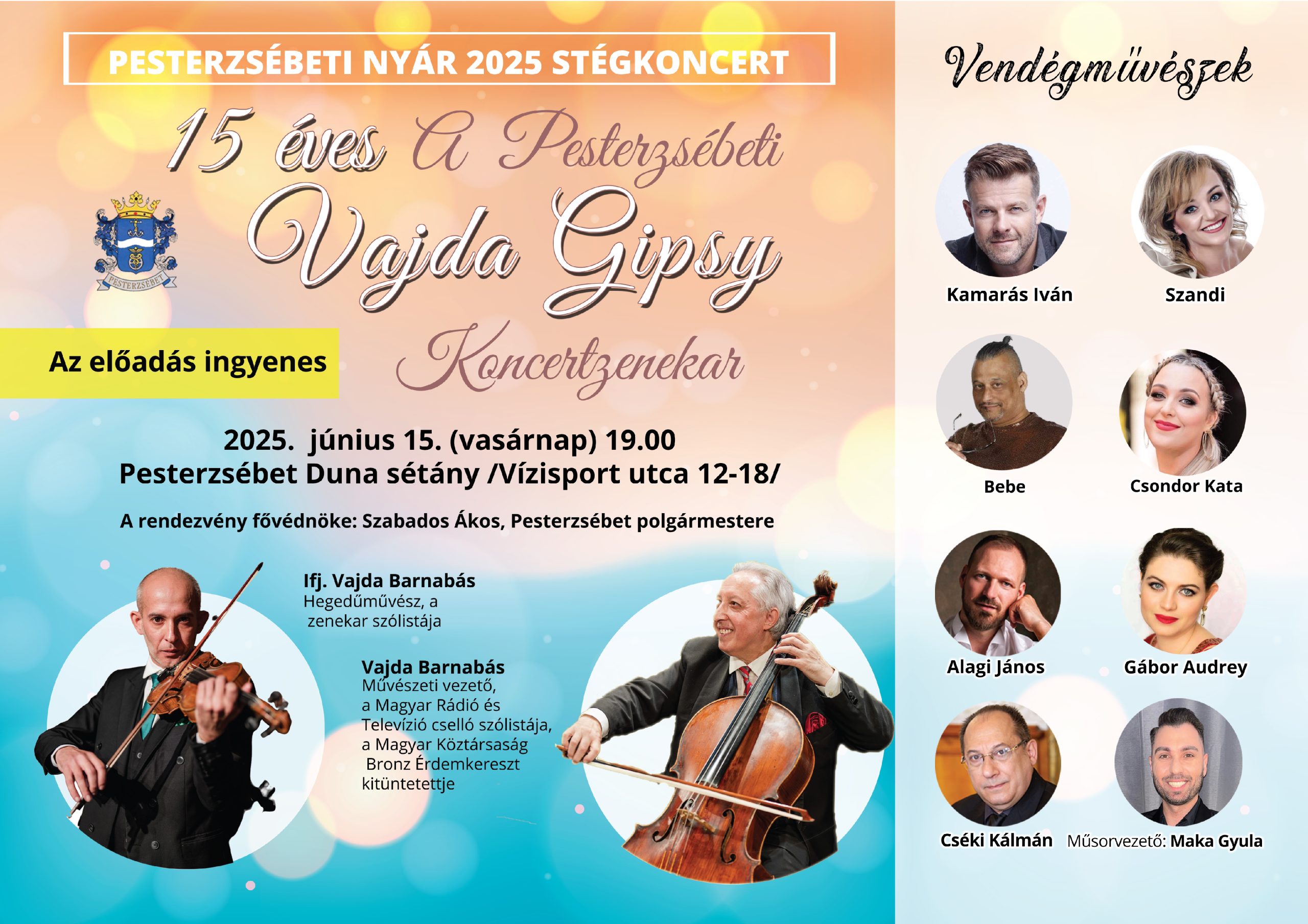 Fellépő: Vajda Gypsy Koncertzenekar Vendégművészek: Kamarás Iván Szandi Bebe Csondor Kata Alagi János Gábor Audrey Cséki Kálmán Műsorvezető: Maka Gyula