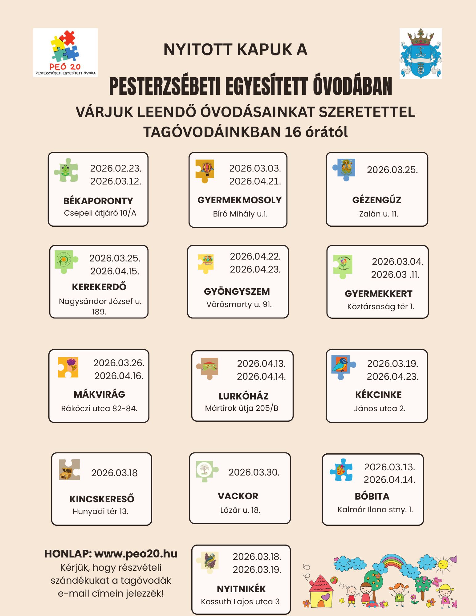 Kérjük, részvételi szándékukat a kiválasztott tagóvoda e-mail címén jelezzék!