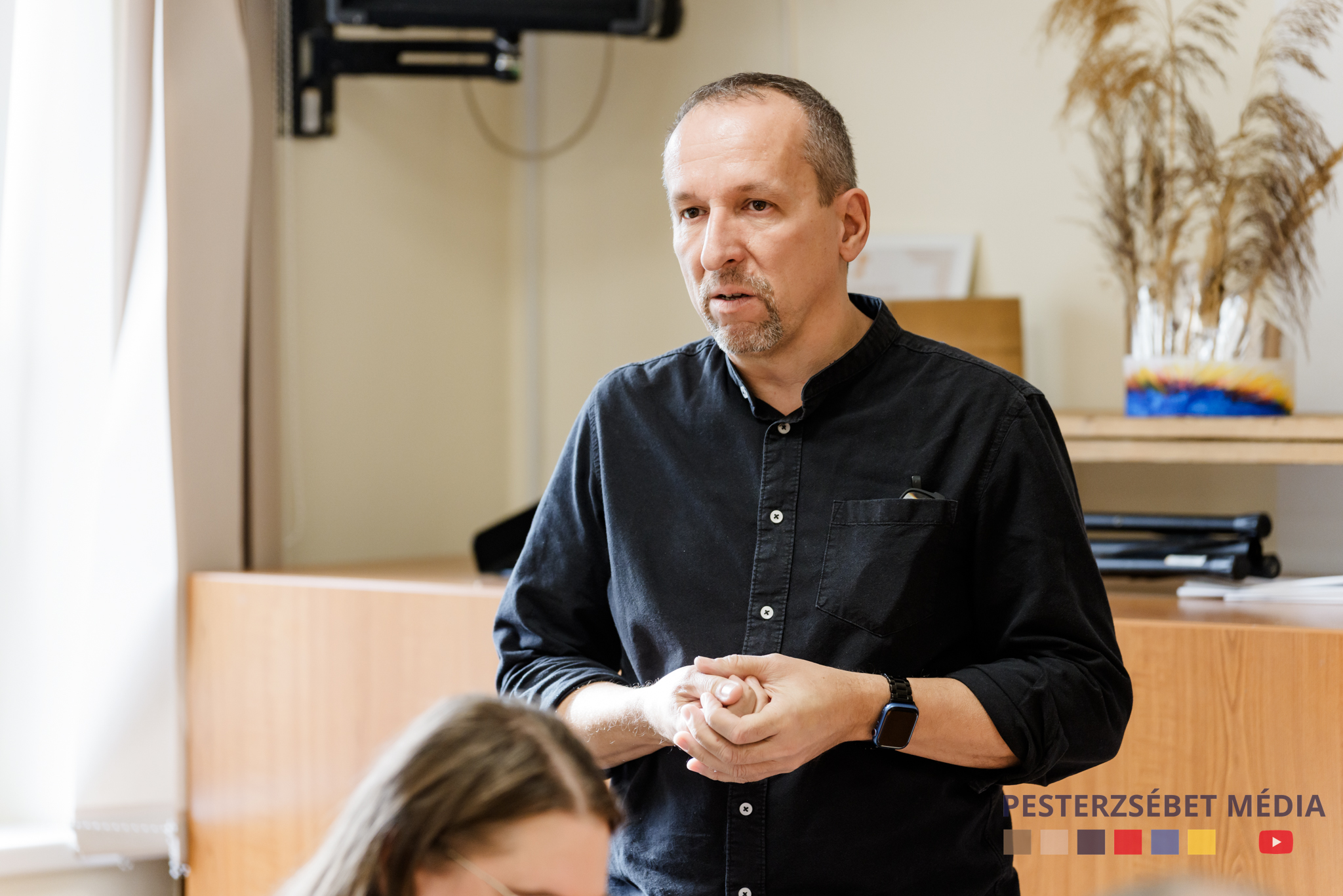 A beszélgetést Burkus Csaba, a Pesterzsébeti Polgármesteri Hivatal Rendvédelmi Osztályának vezetője folytatta, aki röviden bemutatta a közterület-felügyelők munkáját és azt, hogy milyen módon kapcsolódnak és segítik a kerületi Rendőrkapitányságot. Burkus Csaba hangsúlyozta, hogy a Rendvédelmi Osztály részére bárki, 0-24 órában tehet bejelentést, ha olyan eseményt tapasztal a kerületben, amiben bizonytalan, hogy az a rendőrség kompetenciájába tartozik.